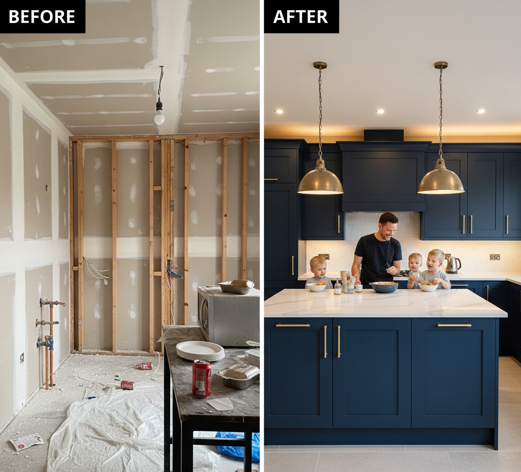 We also design kitchens around how families actually live. We plan storage where it is easy to reach, create clear work paths, and place lighting where tasks happen. This makes cooking, cleaning, and movement in the kitchen more comfortable and efficient.